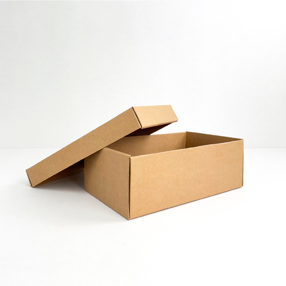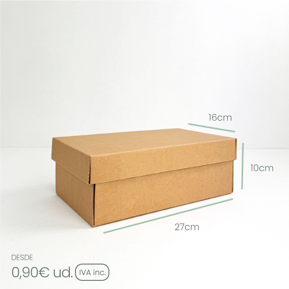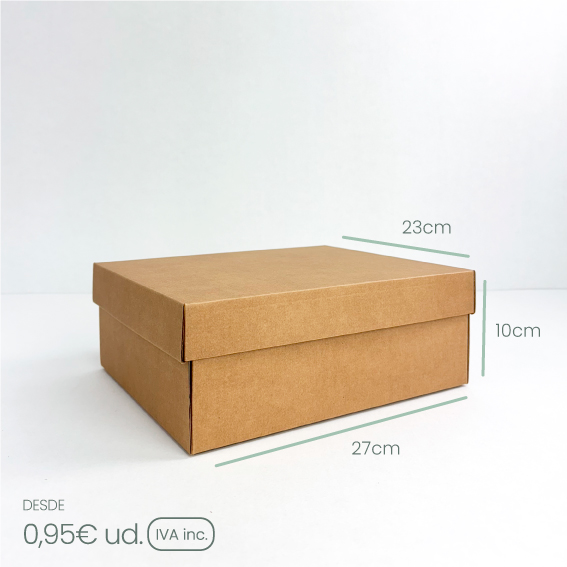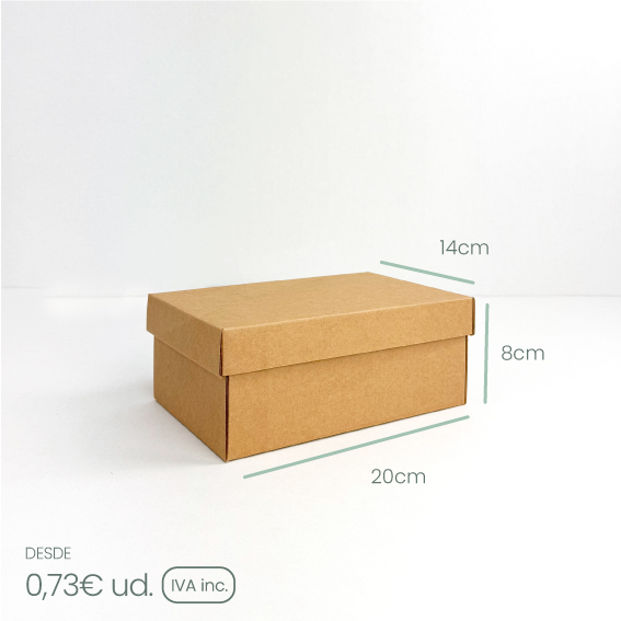 Caja tipo fondo y tapa. Fabricadas con cartón de alta calidad: Kraft micro marrón o blanco.