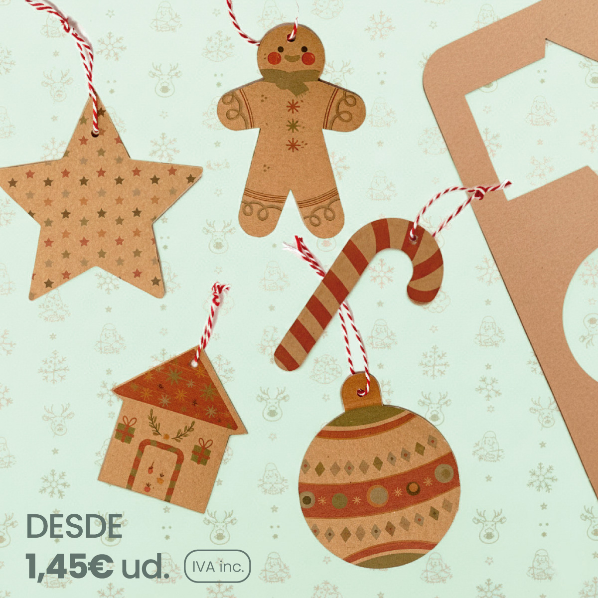 Transforma tu árbol con nuestro set de decoraciones navideñas de cartón, la alternativa ecológica perfecta para una decoración navideña sostenible. Son ideales para colgar en el árbol de Navidad o decorar cualquier rincón con un toque natural y minimalista.